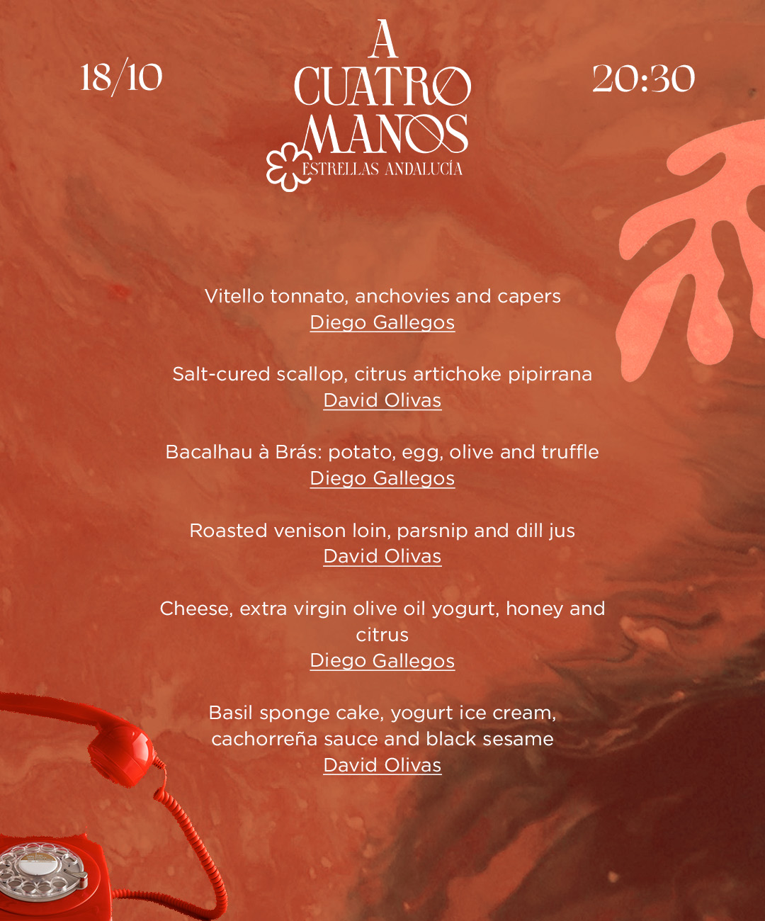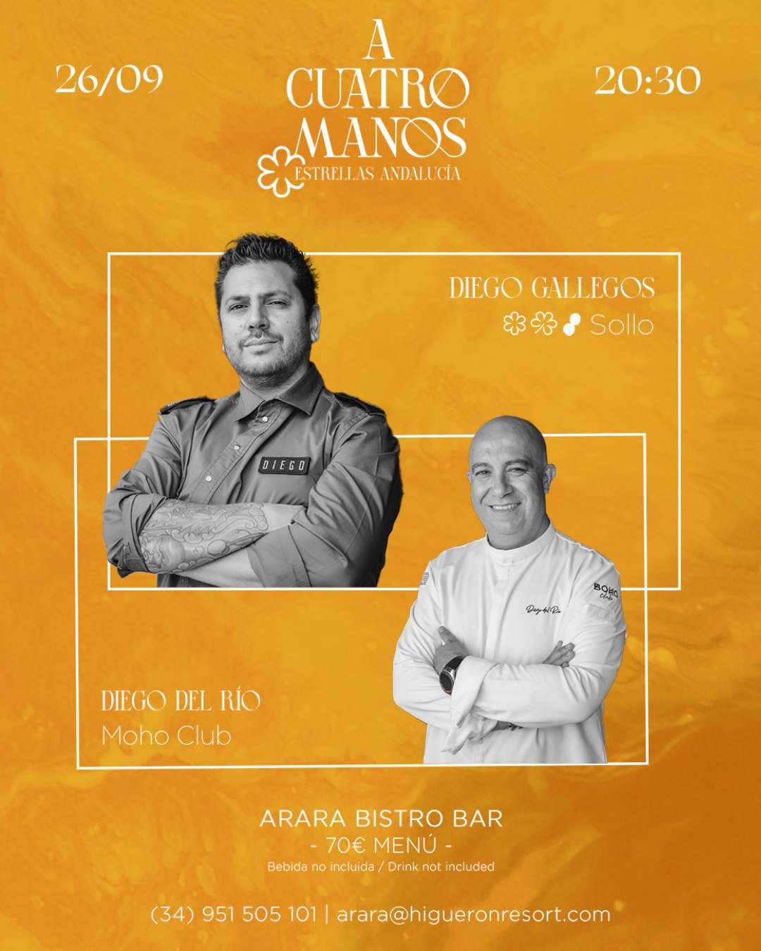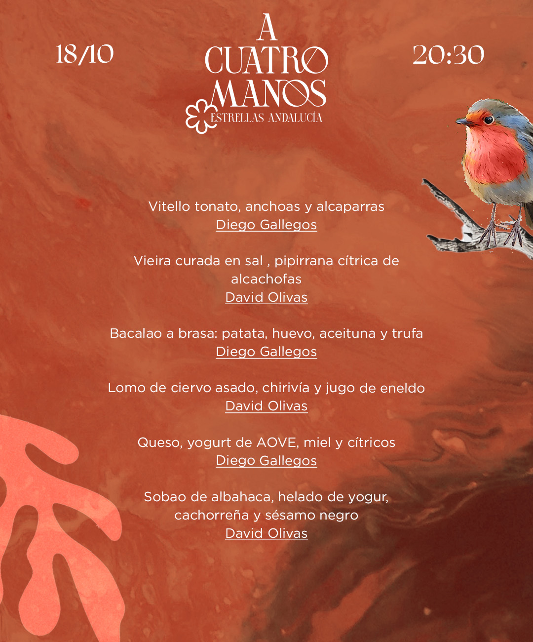 🌿 Diego Gallegos (Sollo) y David Olivas (Black / Enea) se unen en un menú degustación de 6 pases, diseñado para sorprender con creatividad, elegancia y sabor andaluz en cada bocado.