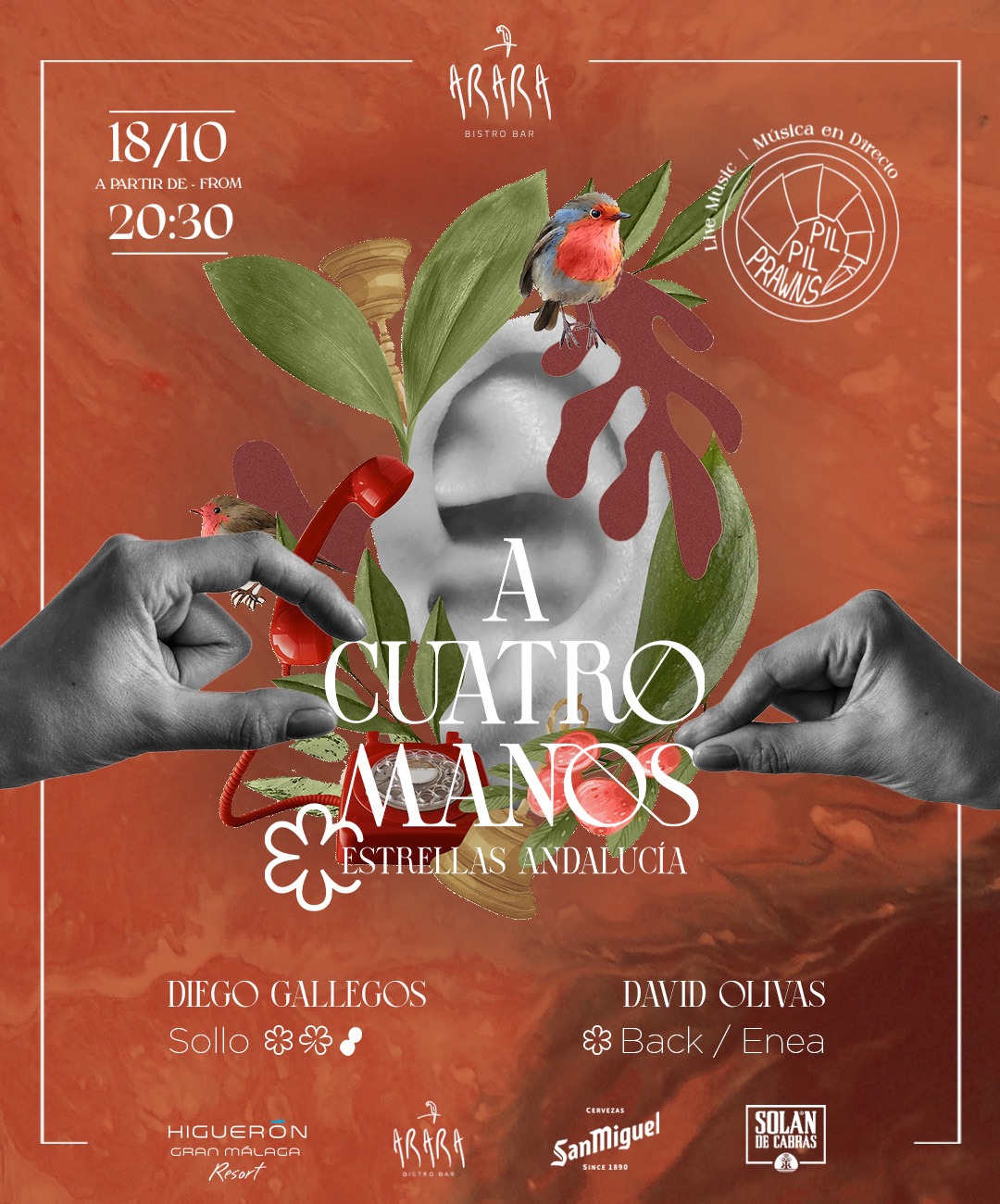 El próximo 18 de octubre a las 20:30h., Arara Bistro Bar abre sus puertas a un nuevo ‘A Cuatro Manos – Estrellas Andalucía’.