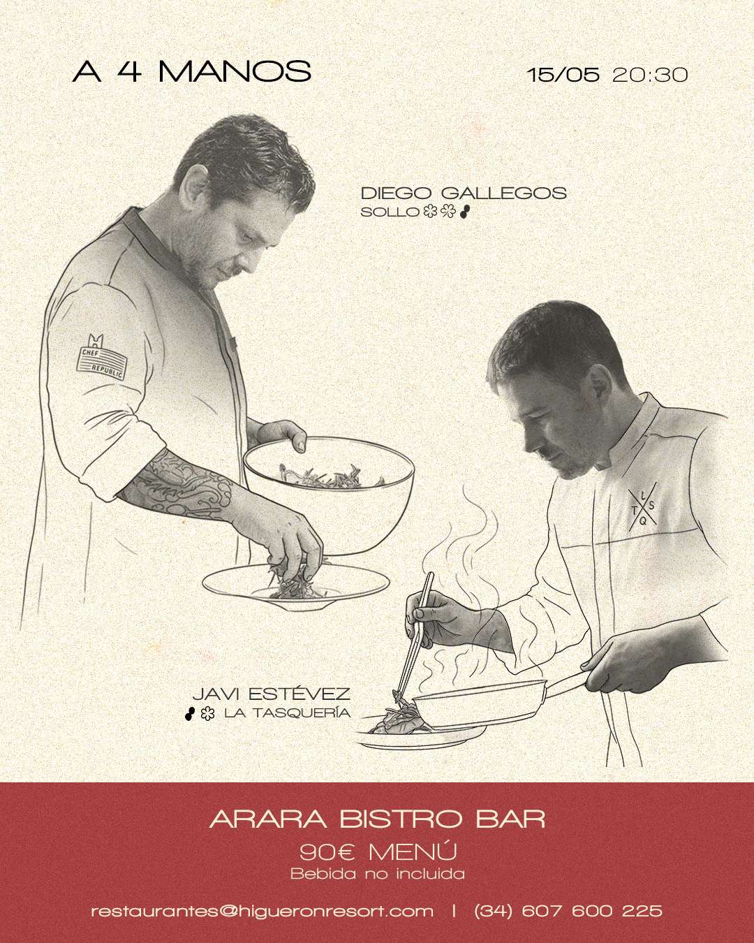 Diego Gallegos (Sollo, ★ Michelin) invita a Javi Estévez, chef de La Tasquería (Madrid, ★ Michelin), a compartir cocina, creatividad y visión en una edición muy especial de A 4 Manos.